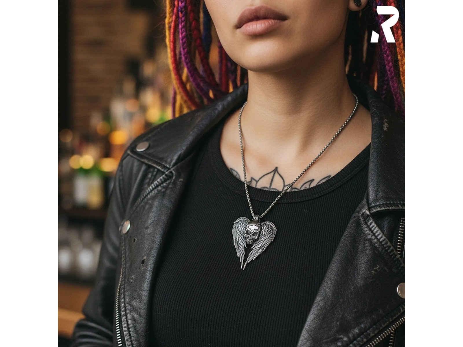 Rockyfy Gothic Totenkopf Anhänger "Dark Wings" Edelstahl by Rockyfy