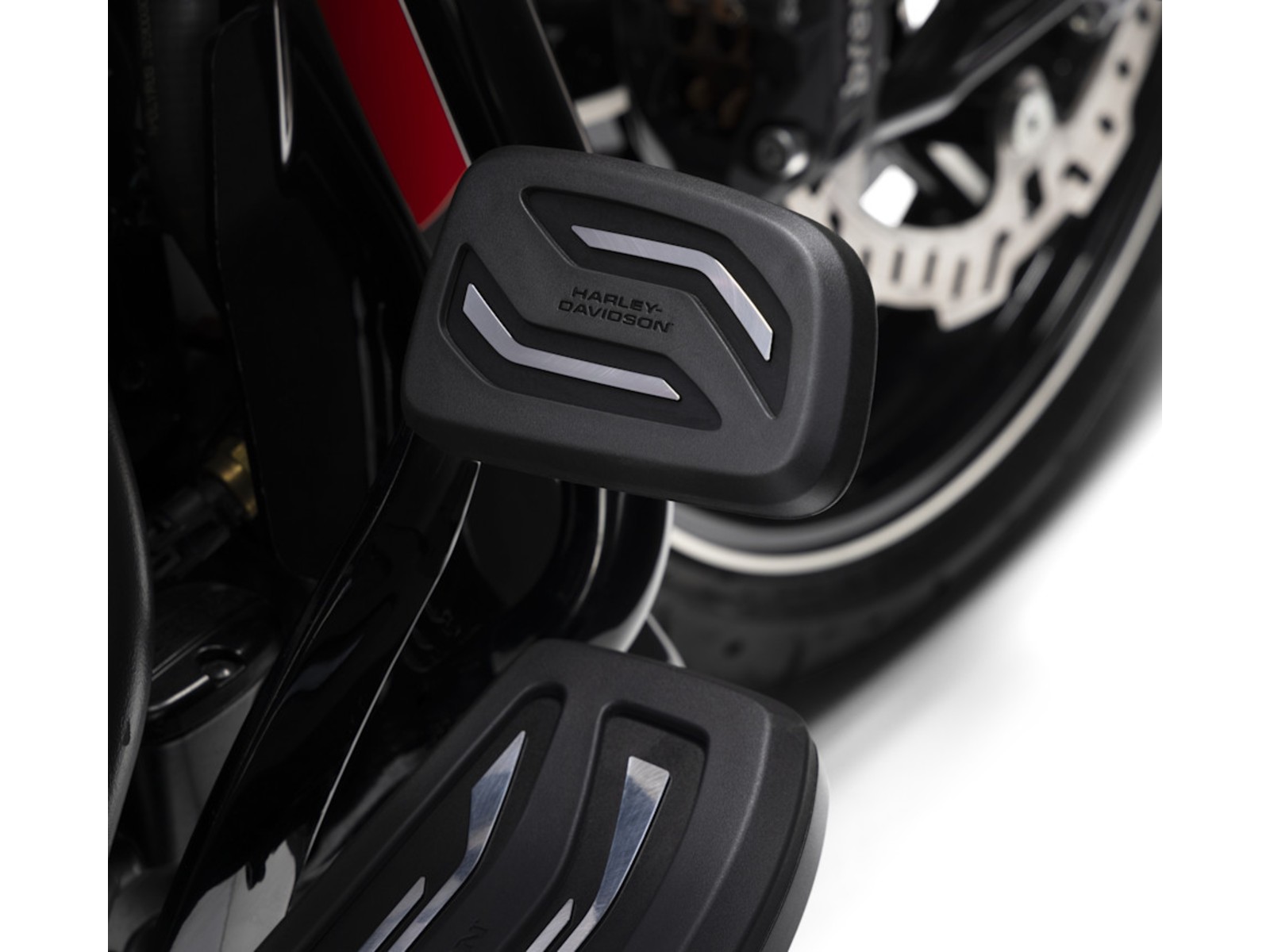 Make a bold statement with a design that highlights your unique style. The premium Carbide Collection accessories are crafted from forged billet aluminum and feature striking, precision-machined details. Black rubber inserts provide excellent grip and comfort. Introduced with the 2025 CVO™ models, these custom components let you showcase your individuality.