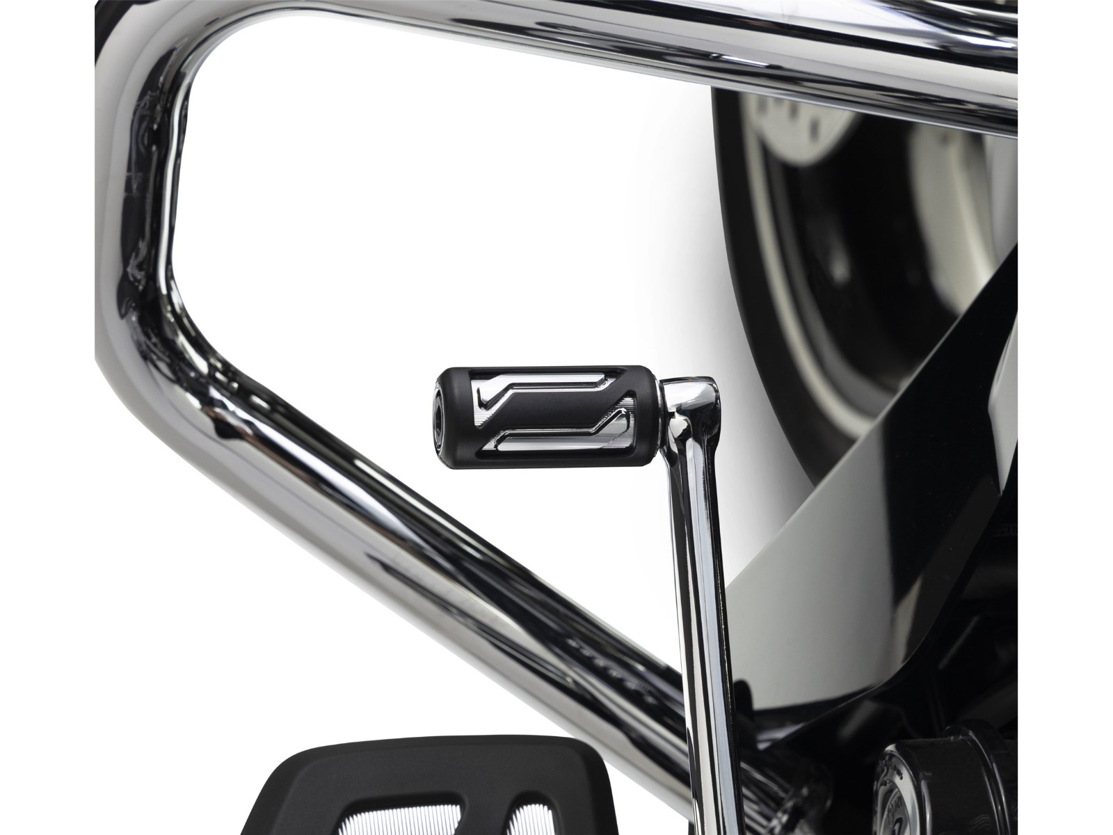 Go for bold style with slashing accents that draw extra attention to your custom vision. Premium Carbide Collection accessories are crafted from forged billet aluminum with a brilliant chrome finish. The chrome shines through cut-outs in black rubber surfaces that provide a positive grip. Step up and step out with the custom accessories introduced on 2025 CVO™ model motorcycles.