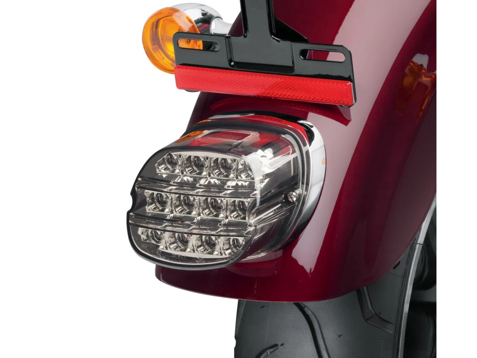 - Smoked lens with integrated license plate light