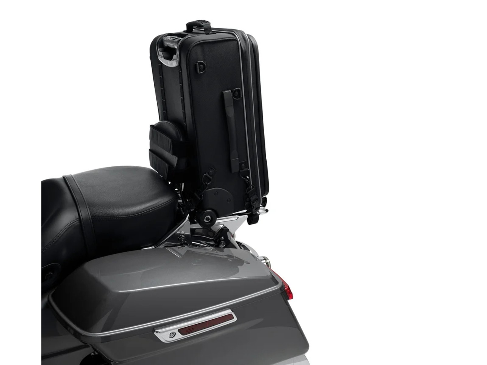 - Requires a sissy bar upright and backrest for mounting. Luggage rack needed if not mounted on the passenger seat. Not compatible with XR1200, XR1200X, FXDRS, XG, and FLTRXRRSE models from 2025 onward.
