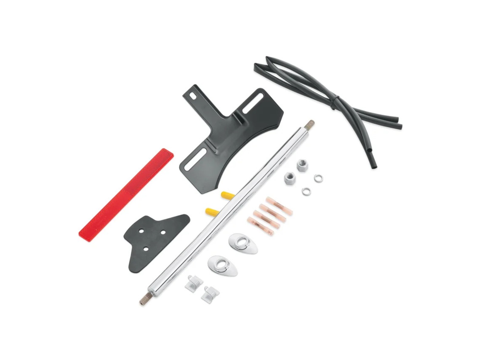 This kit allows you to reposition the rear turn signals from the standard fender mounts to the signal bar attached to the license plate bracket.