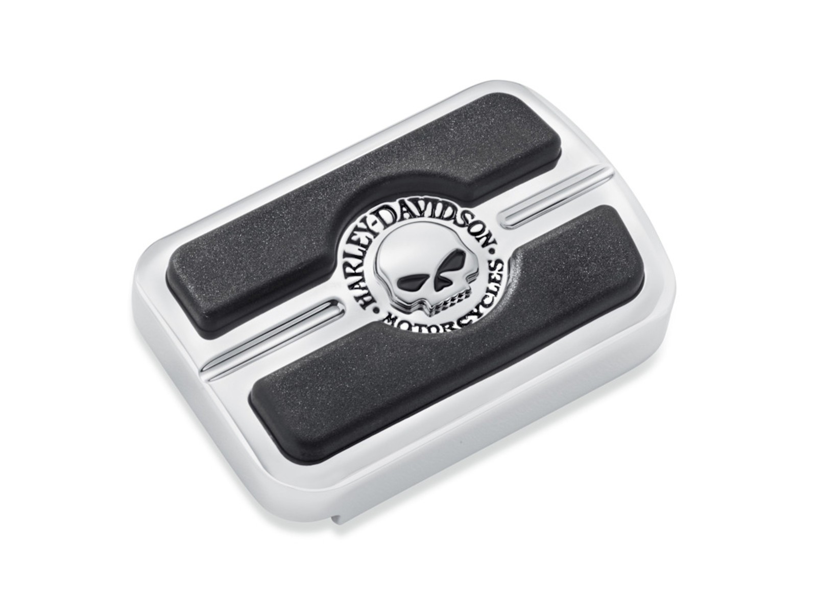 The Willie G Skull Small Brake Pedal Pad pairs deep‑black rubber inserts with a brilliant polished chrome surface, creating the dramatic and iconic look of the Skull Collection. It complements other Willie G components and installs quickly and easily.