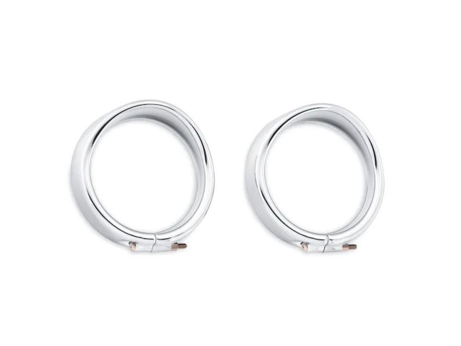 Estos anillos cromados para los faros de estilo visera son un complemento indispensable. Empotran el indicador en la carcasa y dan a la carcasa del indicador un diseño tradicional de "ceja". El anillo embellecedor estira el perfil de la moto y le da un aspecto alargado y elegante.