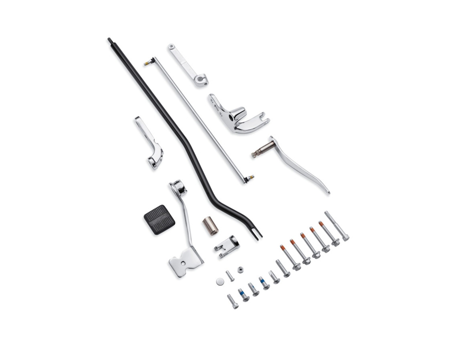 - Kit completo para convertir los reposapiés estándar en posición central de una Dyna® en controles adelantados