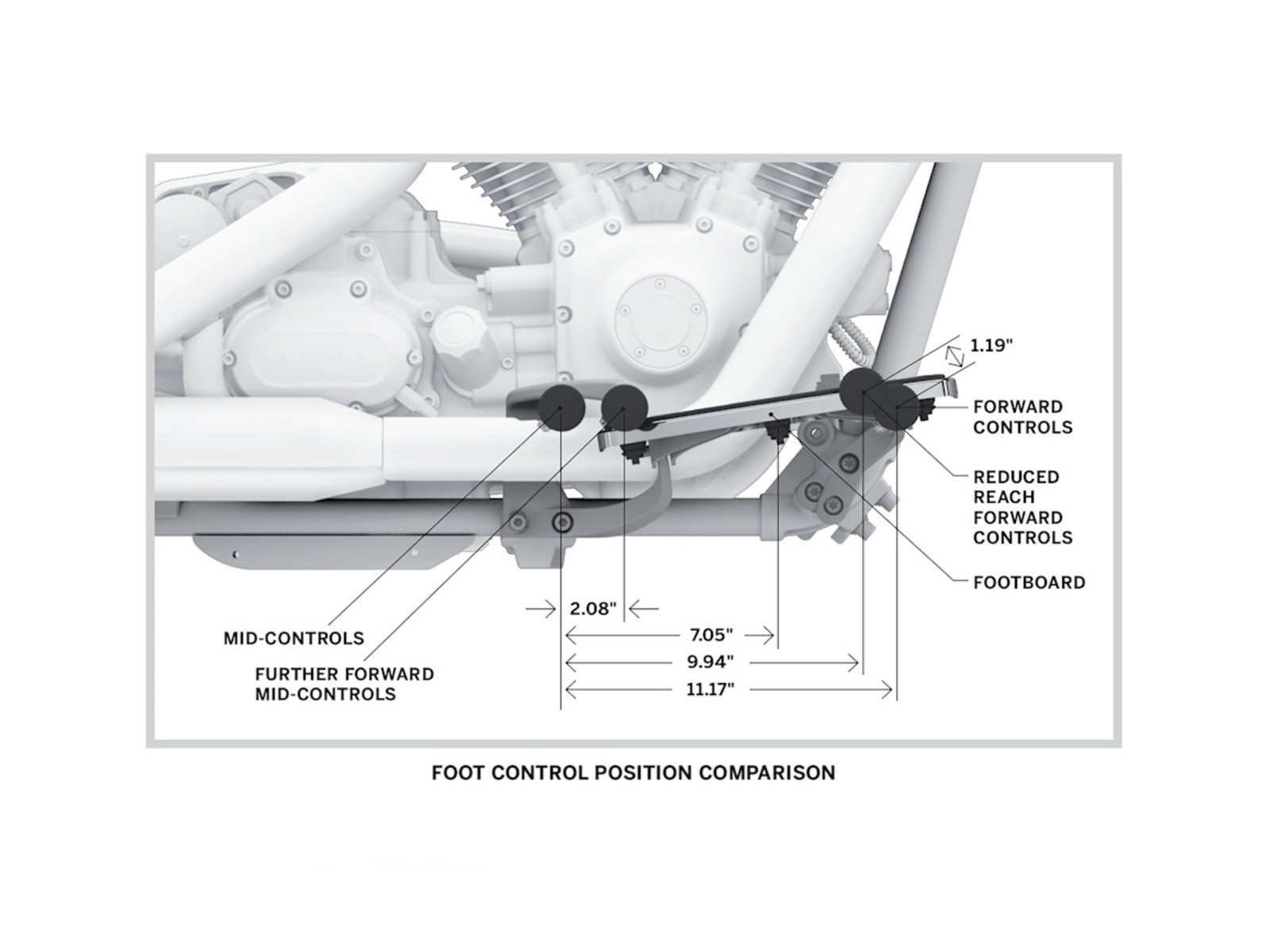- Adelanta los reposapiés 27,9 cm para una postura de conducción más relajada y ergonómica