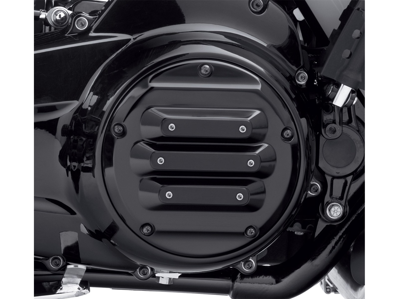 Añada un toque personalizado al aspecto ennegrecido de su motocicleta con este kit de herrajes negros Derby Cover.