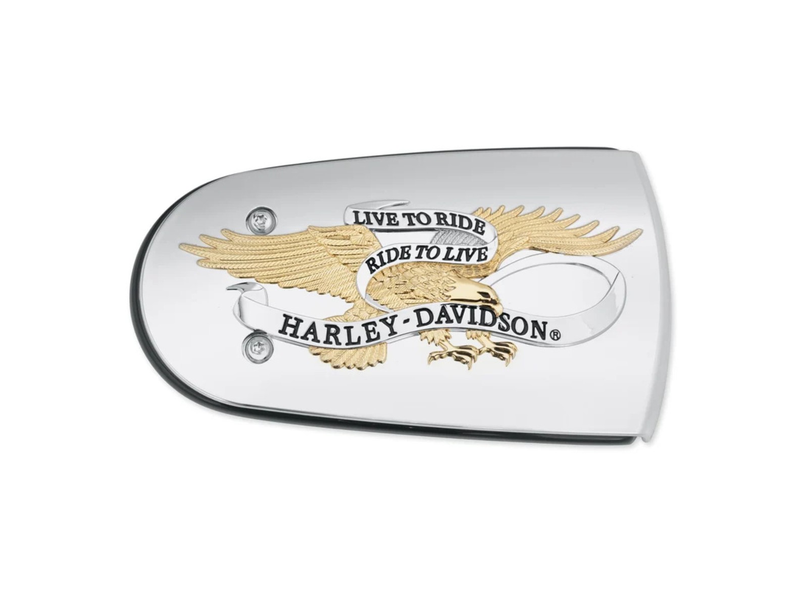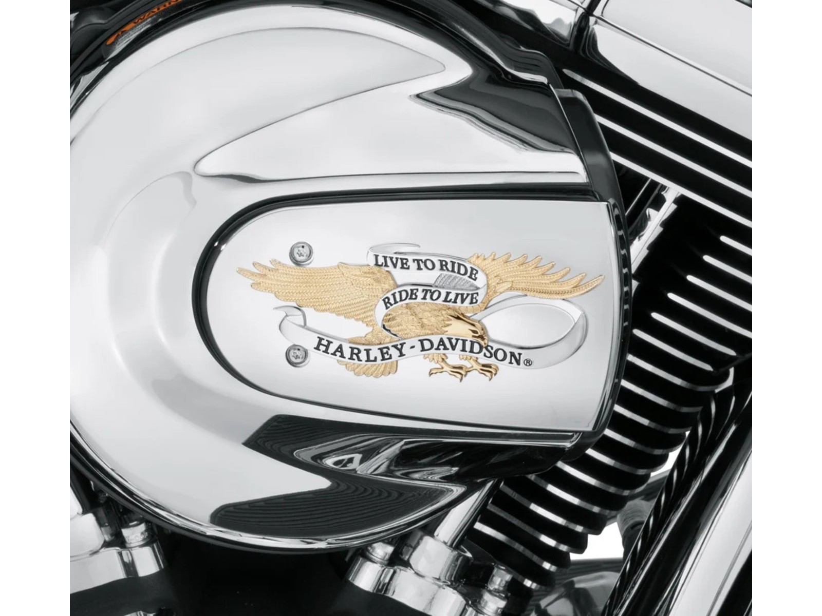 “Live to Ride, Ride to Live” – este lema legendario está profundamente arraigado en la comunidad Harley-Davidson® y ha acompañado a los motociclistas durante incontables kilómetros. La colección “Live to Ride” rinde homenaje a este estilo de vida. Este embellecedor cromado con águila dorada es fácil de instalar y muestra al mundo que tú también vives bajo este credo.