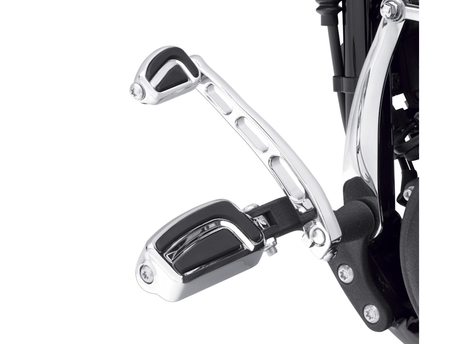 La estribera de cambio Airflow combina el estilo clásico de Harley con una elegancia moderna. Inspirada en las alas delta, incorpora un borde cromado brillante y franjas negras antideslizantes que armonizan con el diseño fluido de tu motocicleta. Una ranura profunda y brillante dirige la mirada desde la parte delantera hasta la trasera —un rasgo distintivo de la colección Airflow.