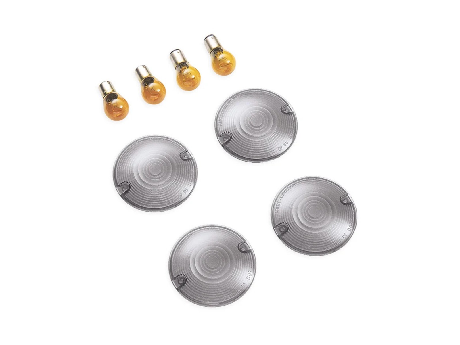 Incluye cuatro lentes tintados y cuatro bombillas naranjas, compatibles con muchos modelos Harley-Davidson® desde 1986 con lentes planos.