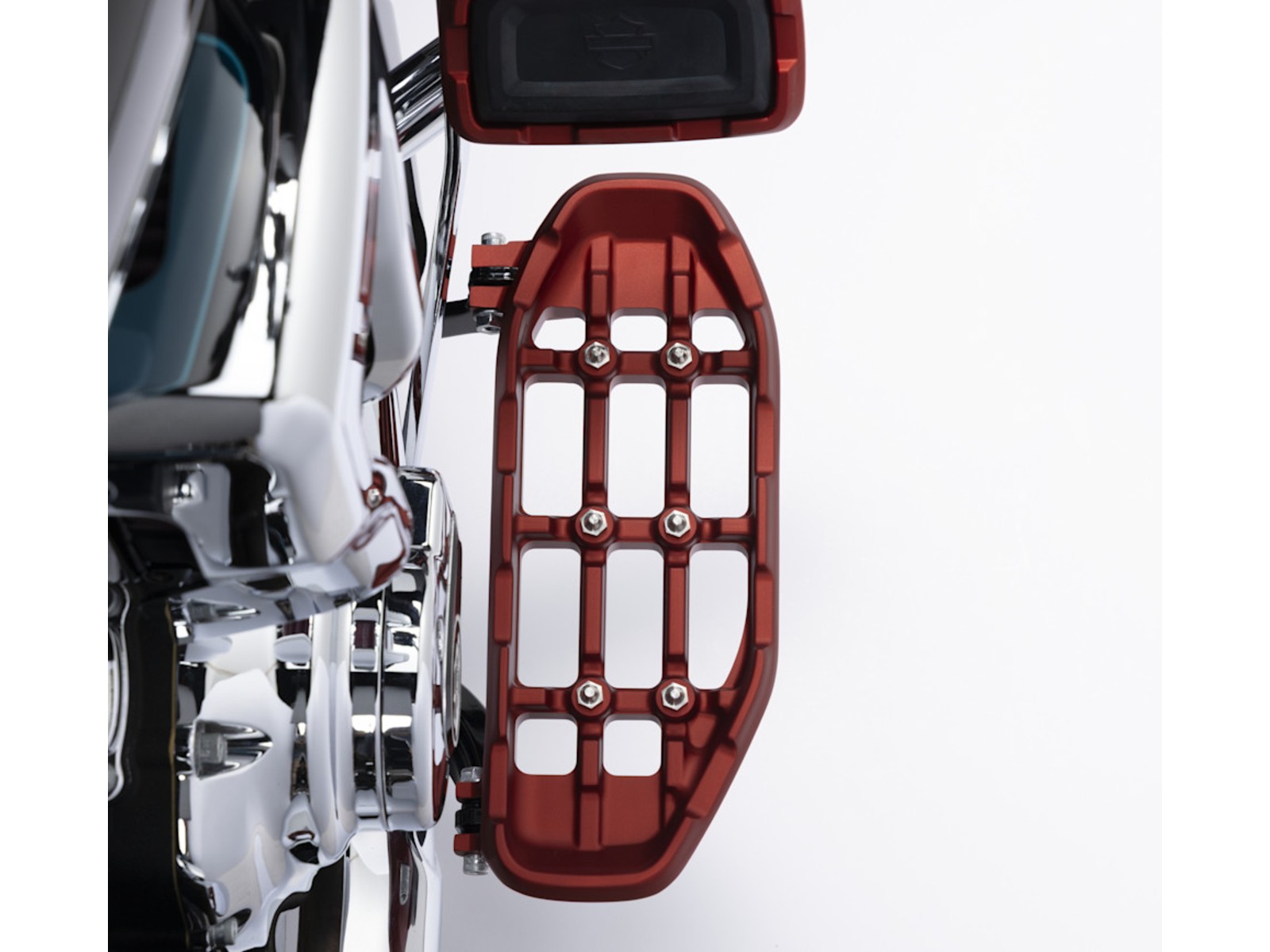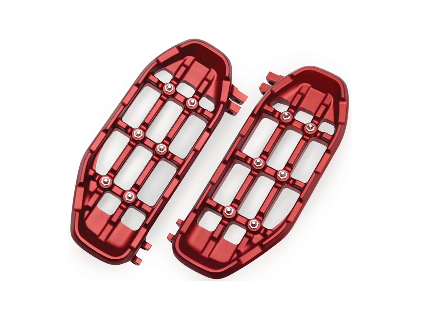 La colección Redline combina rendimiento sin concesiones con un estilo personalizado y llamativo. Este juego de plataformas para el conductor está fabricado en aluminio forjado de alta calidad y cuenta con un acabado anodizado rojo brillante, que aporta un toque de color distintivo a tu moto. El diseño abierto con bordes elevados agarra las suelas de las botas para mayor seguridad. Los tacos atornillados mejoran la tracción y aportan un aspecto agresivo. Para mayor comodidad y estilo, añade las inserciones de goma Redline (P/N 50503139), disponibles por separado. Completa tu diseño personalizado con otros accesorios de la colección Redline.