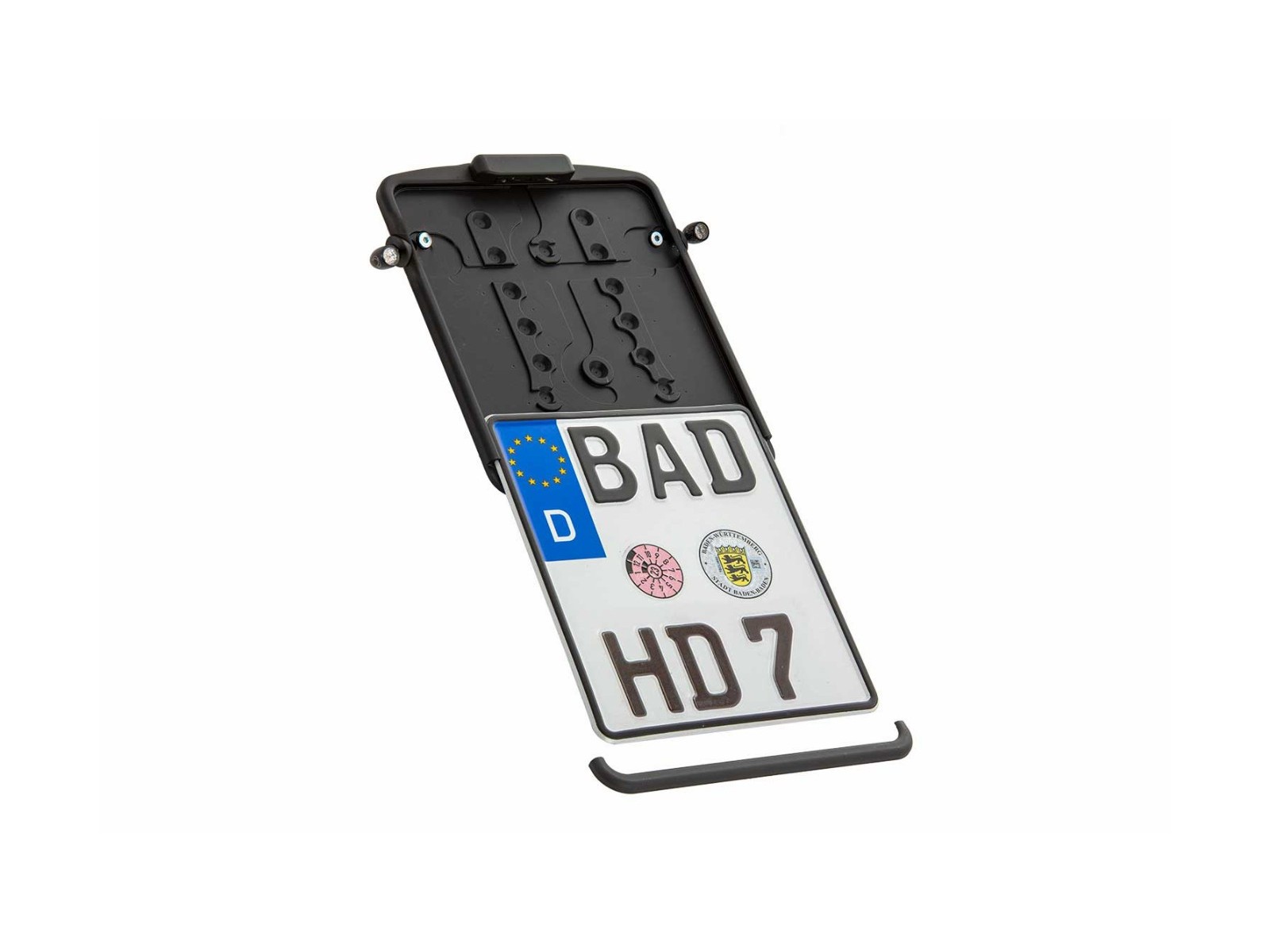 - La placa de matrícula puede introducirse en la guía fresada de la parte inferior y atornillarse.