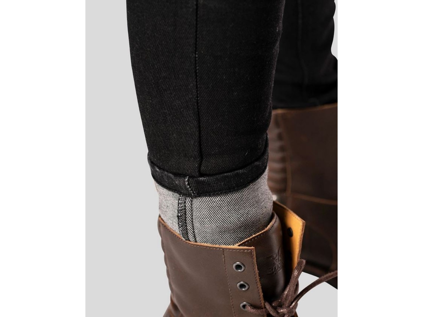 - Material: Tejido vaquero elástico negro lavado de alta calidad de 12 oz con fibras de UHMWPE de alta resistencia a la abrasión (61% algodón, 19% polietileno, 11% poliamida, 8% elastomultiéster, 1% elastano)