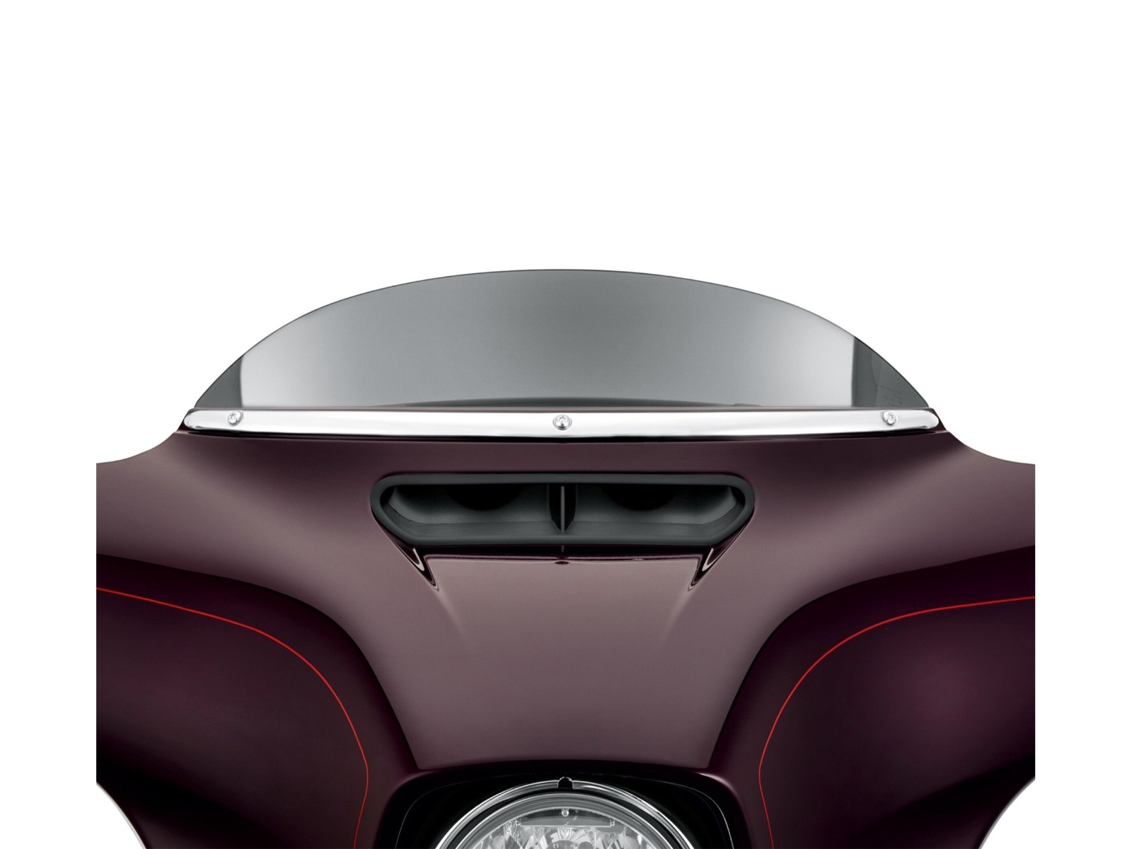 La garniture de pare-brise chromée ajoute une touche distinctive au carénage de votre Electra Glide®.
