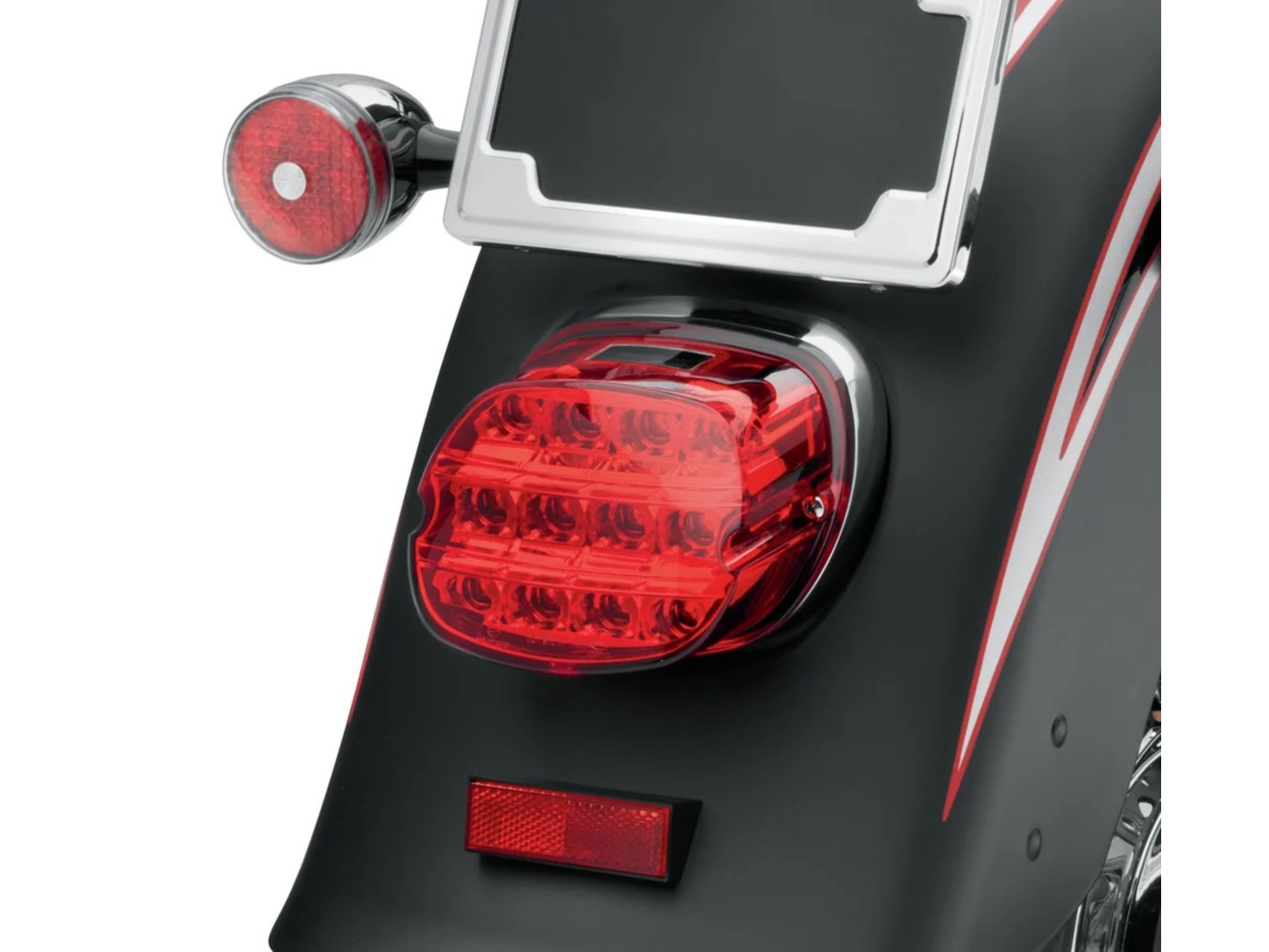 Conçu pour épouser la forme du garde-boue arrière de votre Harley®, ce feu arrière LED Layback allie style et performance. Les LED à allumage instantané, disposées en motif quadrillé, offrent une luminosité supérieure aux ampoules classiques. Lors du freinage, elles attirent immédiatement l’attention des autres usagers de la route – pour plus de sécurité et d’élégance.