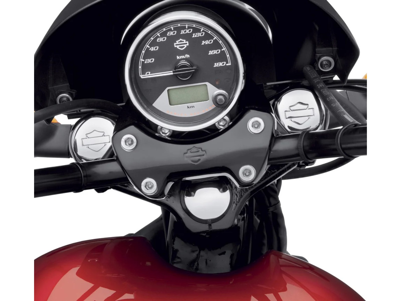 Ce kit élégant met en valeur les lignes épurées de votre pont de fourche supérieur. Il comprend deux caches de tubes de fourche et un cache de colonne de direction en forme de croissant, tous en chrome brillant avec un discret logo Bar & Shield embossé – une touche finale parfaite pour un look personnalisé raffiné.