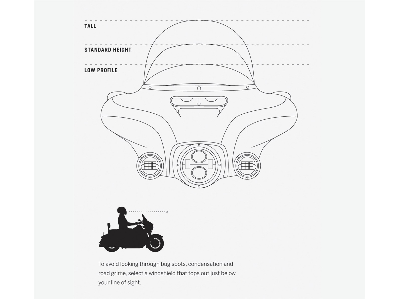 Apportez un style affirmé et une meilleure gestion du flux d’air à votre modèle Touring. Ce pare-brise Wind Splitter de 4,5" offre un design profilé avec une protection efficace là où elle est la plus nécessaire.
