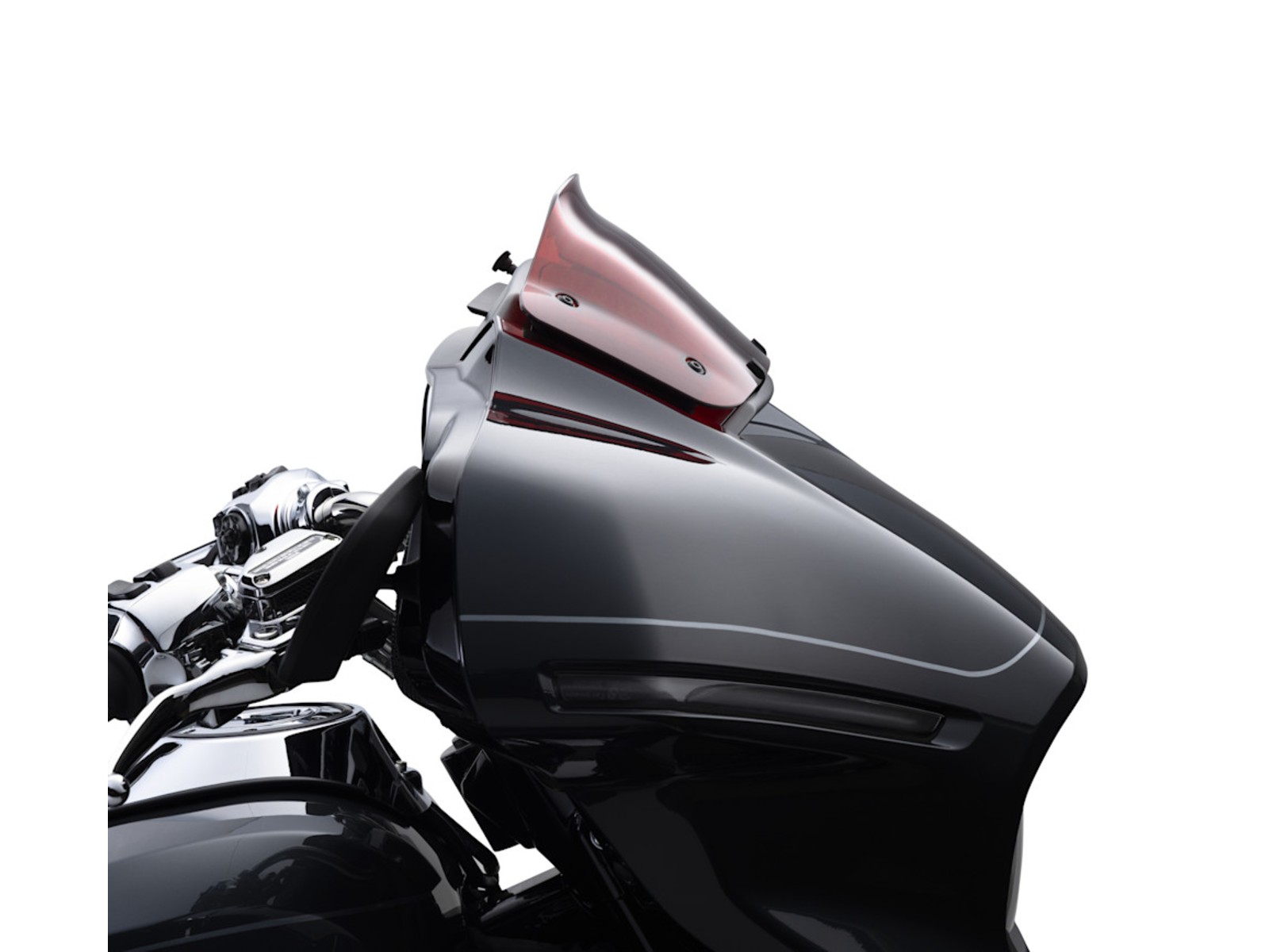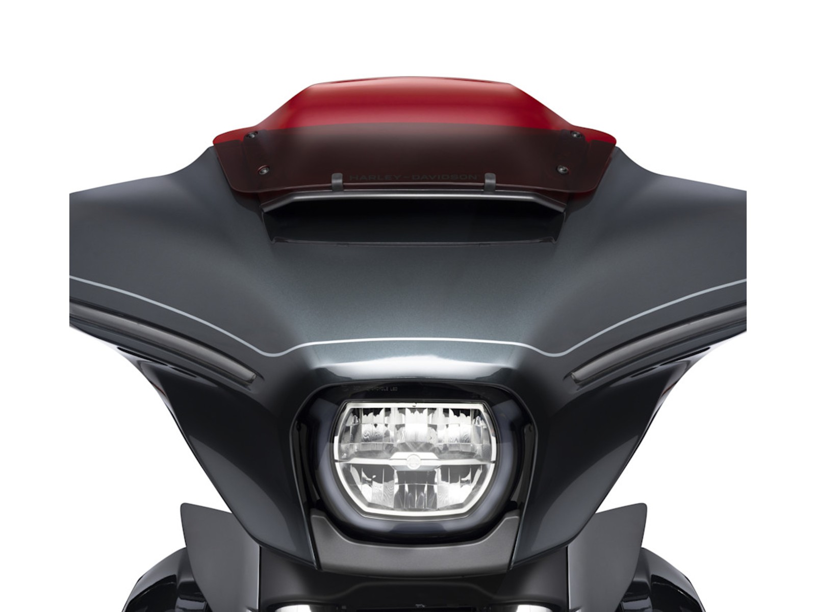 Sa peinture rouge distinctive a été présentée pour la première fois sur les modèles CVO Street Glide ST 2026. Son profil courbé s’intègre parfaitement aux lignes du carénage et de la console intérieure, offrant davantage de hauteur au centre qu’un déflecteur bas classique – exactement là où cela compte.
