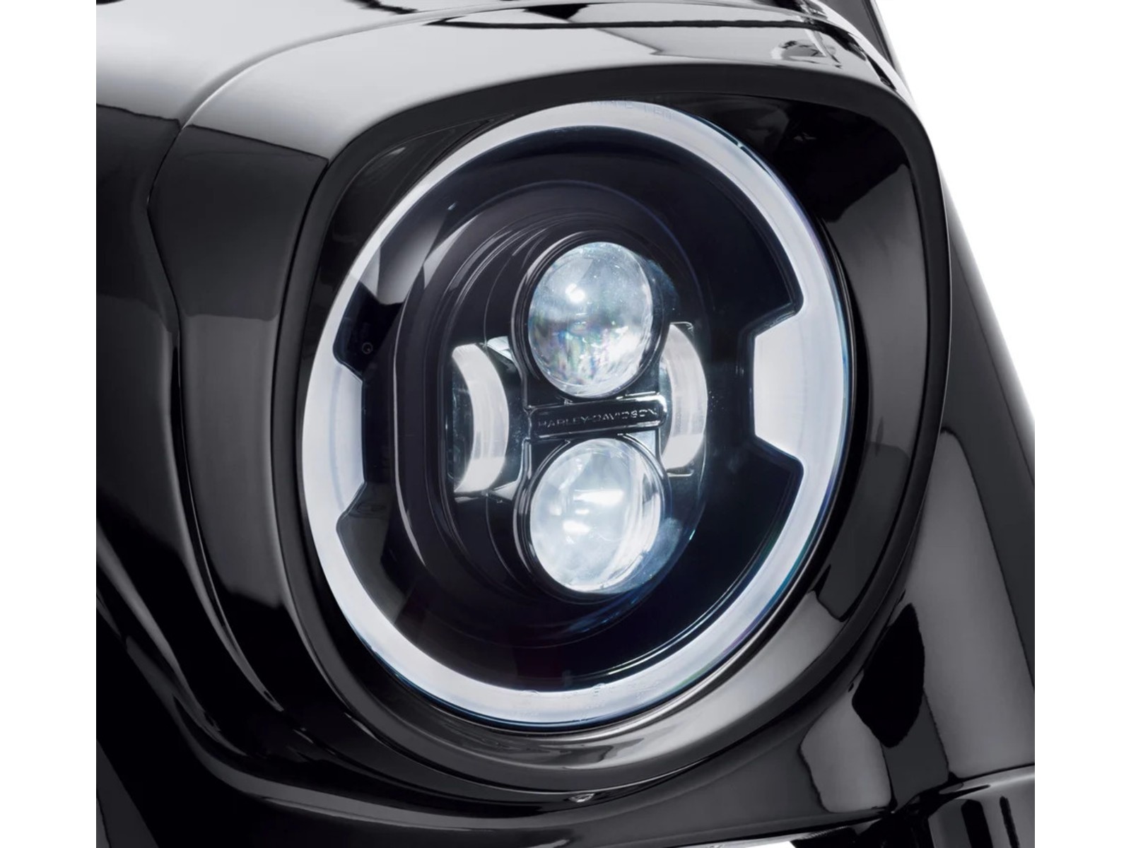 - FLD ’12–’16, Softail ’04–’17 avec boîtier Freight Train & Touring ’09–’13 : kit de bague de montage réf. 67700439 & faisceau réf. 69201070