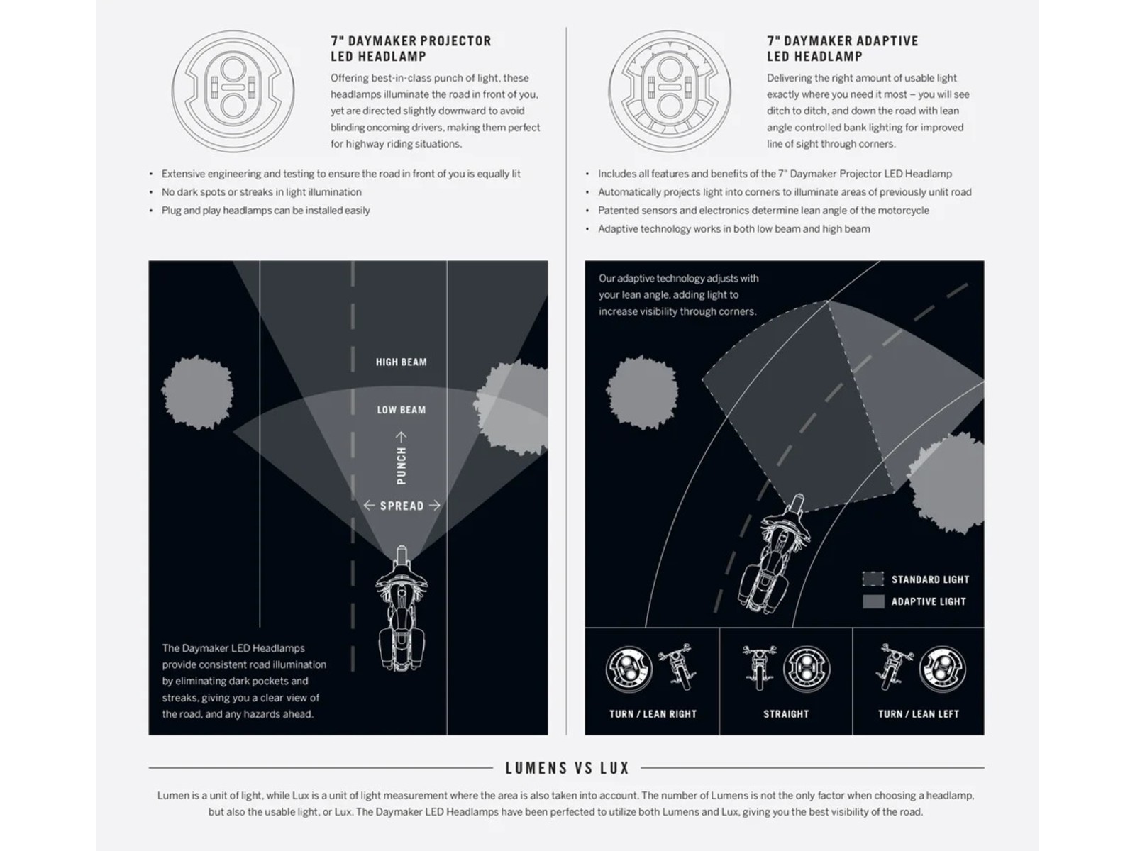 Le projecteur LED Daymaker Projector offre un éclairage puissant là où vous en avez le plus besoin, avec un style moderne et une visibilité accrue. Son faisceau blanc intense éclaire la route de manière uniforme sans éblouir les conducteurs venant en sens inverse – idéal pour les trajets sur autoroute. L’unité LED scellée, résistante aux chocs et aux vibrations, s’installe facilement dans le boîtier de phare existant sans nécessiter de recâblage.