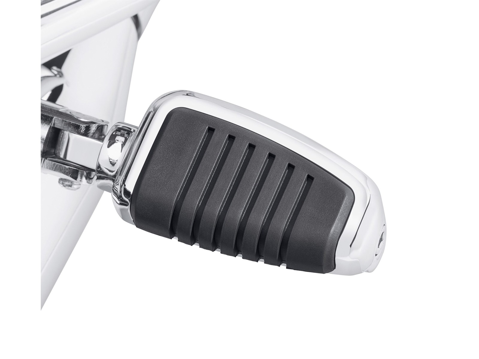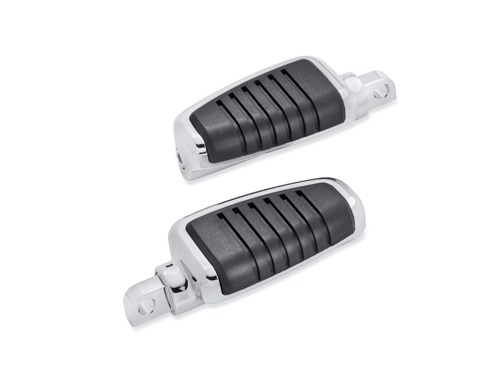 Discrets mais puissants. Ces repose-pieds de la collection Kahuna présentent une finition chromée miroir et un insert en caoutchouc noir rainuré pour une adhérence optimale et un style haut de gamme.