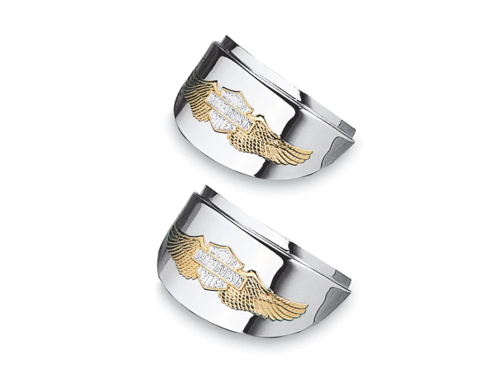 Ces visières de clignotants élégantes complètent parfaitement la visière de phare de la collection Eagle Wing et apportent une touche distinctive et haut de gamme à votre moto. La finition chromée brillante est ornée d’un logo Bar & Shield en relief entouré d’ailes d’aigle puissantes. Les visières enveloppent entièrement le clignotant et sont vendues par paire. Consultez les compatibilités pour l’avant et l’arrière.