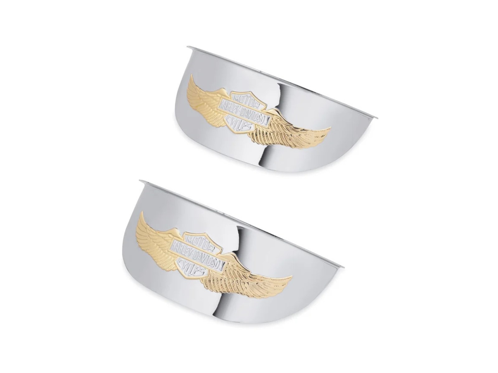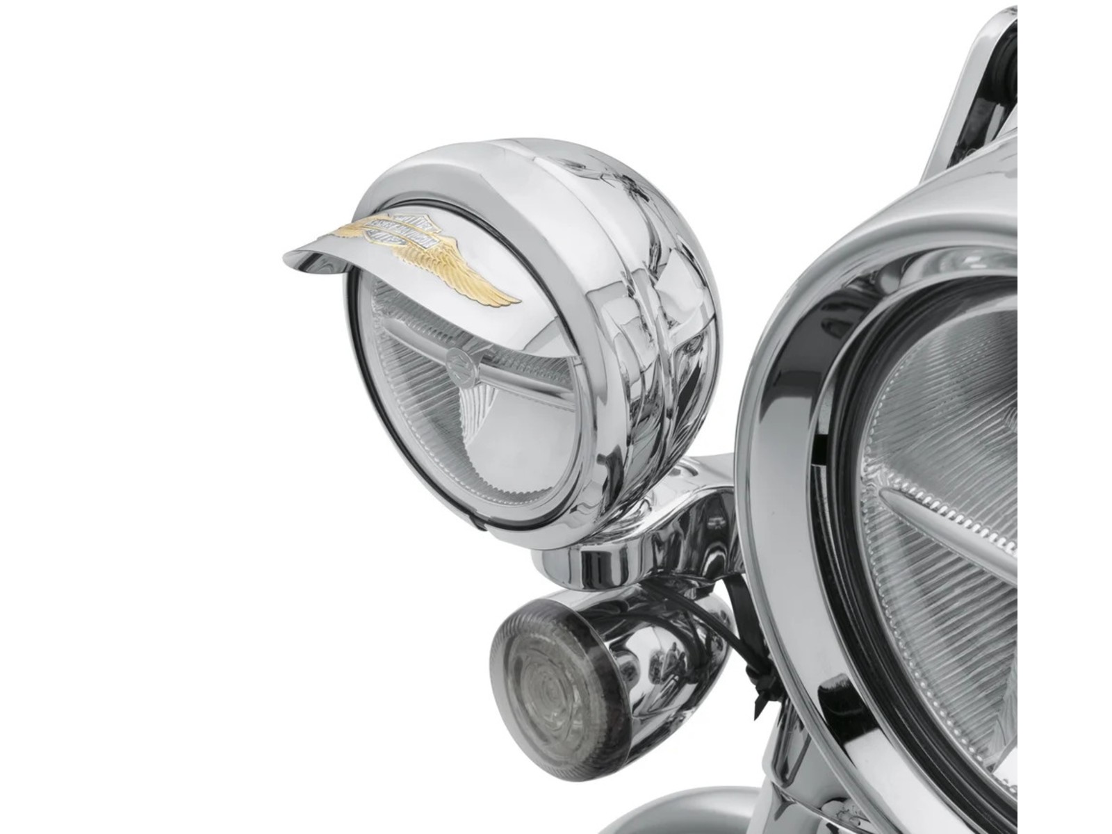 Ces élégantes visières de la collection Eagle Wing sont le complément idéal à la visière de phare principale assortie. Avec leur design distinctif – le logo Bar & Shield en relief entouré d’ailes d’aigle stylisées – elles apportent une touche personnalisée à vos phares auxiliaires. Les visières chromées enveloppent entièrement les phares pour un look harmonieux. Vendues par paire et compatibles avec tous les phares auxiliaires. Les modèles à partir de 1987 nécessitent les bagues décoratives réf. 68775-93TA. Non compatibles avec les bagues réf. 69622-99B ou 69732-05.