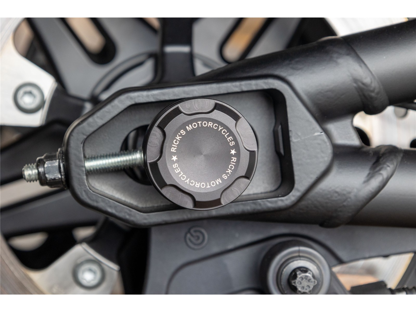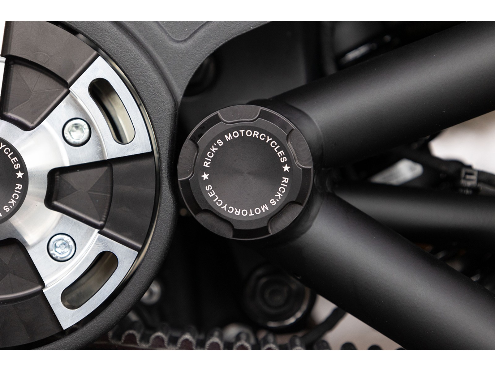 Maintenant dans le programme de Rick`s Motorcycles: le kit complet pour une mise à niveau visuelle du Sportster S avec des couvercles d'axe et de fourche propres.