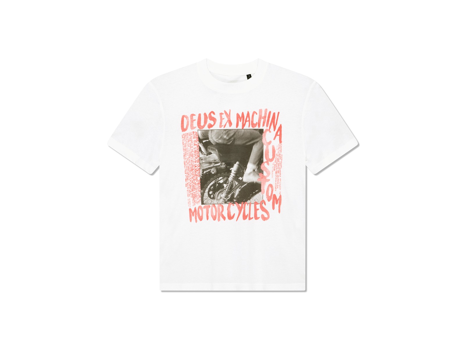 - Bedrucktes Grafik-T-Shirt mit individuellem Druck unter Verwendung von Deus Ex Machina Archivfotografie.