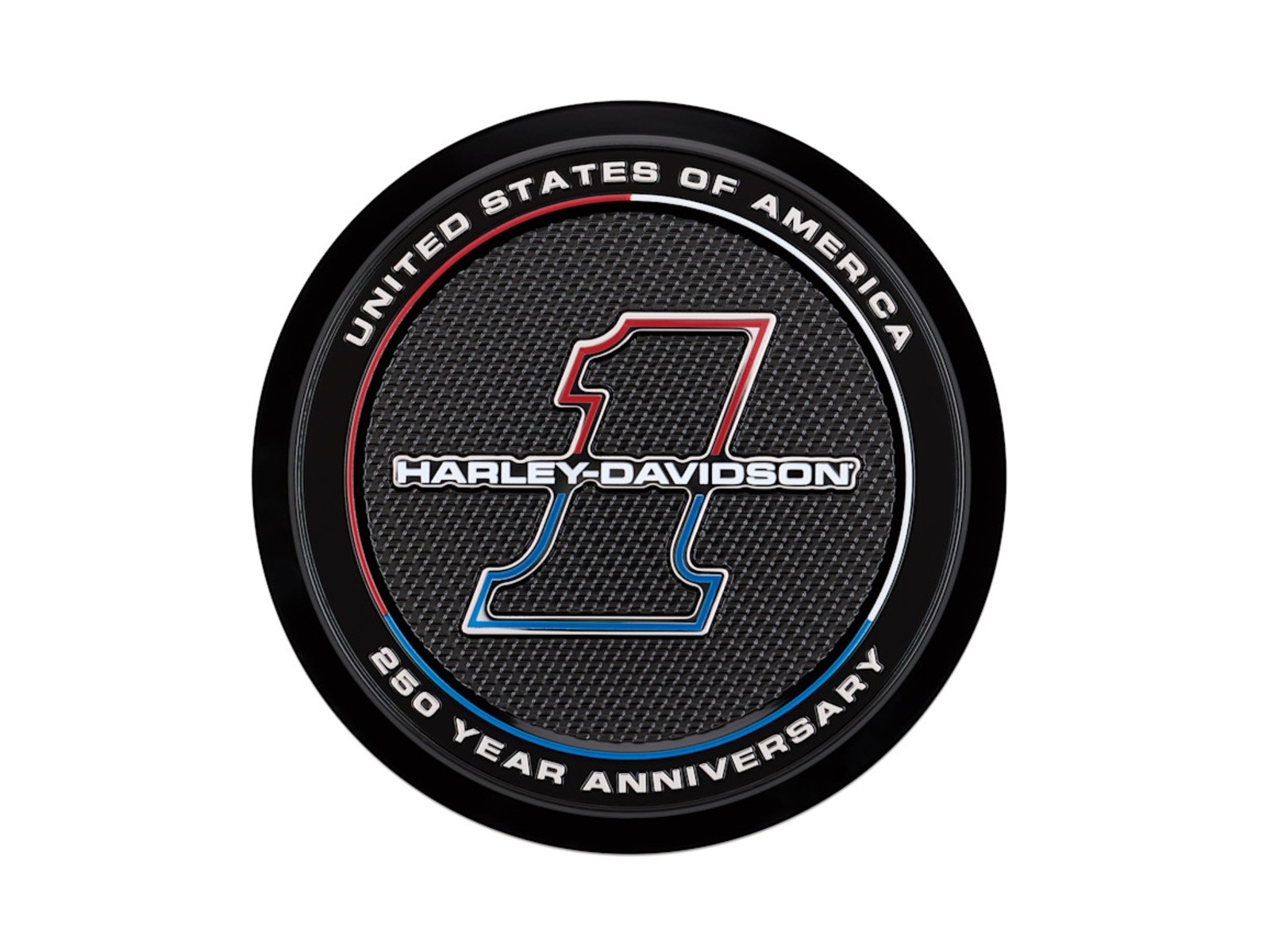 Feiere den 250. Jahrestag der Vereinigten Staaten und zeige deinen Patriotismus mit dieser limitierten Jubiläumsmedaille Nr. 1. Das Design besticht durch das rot-weiß-blaue Harley-Davidson #1 Logo und die umlaufende Gravur „United States of America 250 Year Anniversary“. Dank der praktischen Kleberückseite lässt sich das Medaillon mühelos anbringen. Speziell entwickelt für die Softail Derby-Deckel der Redline Collection.