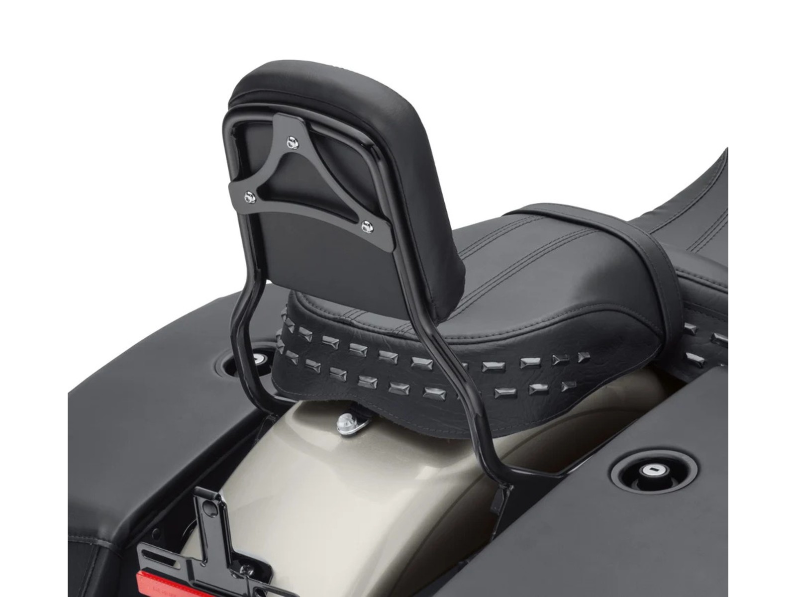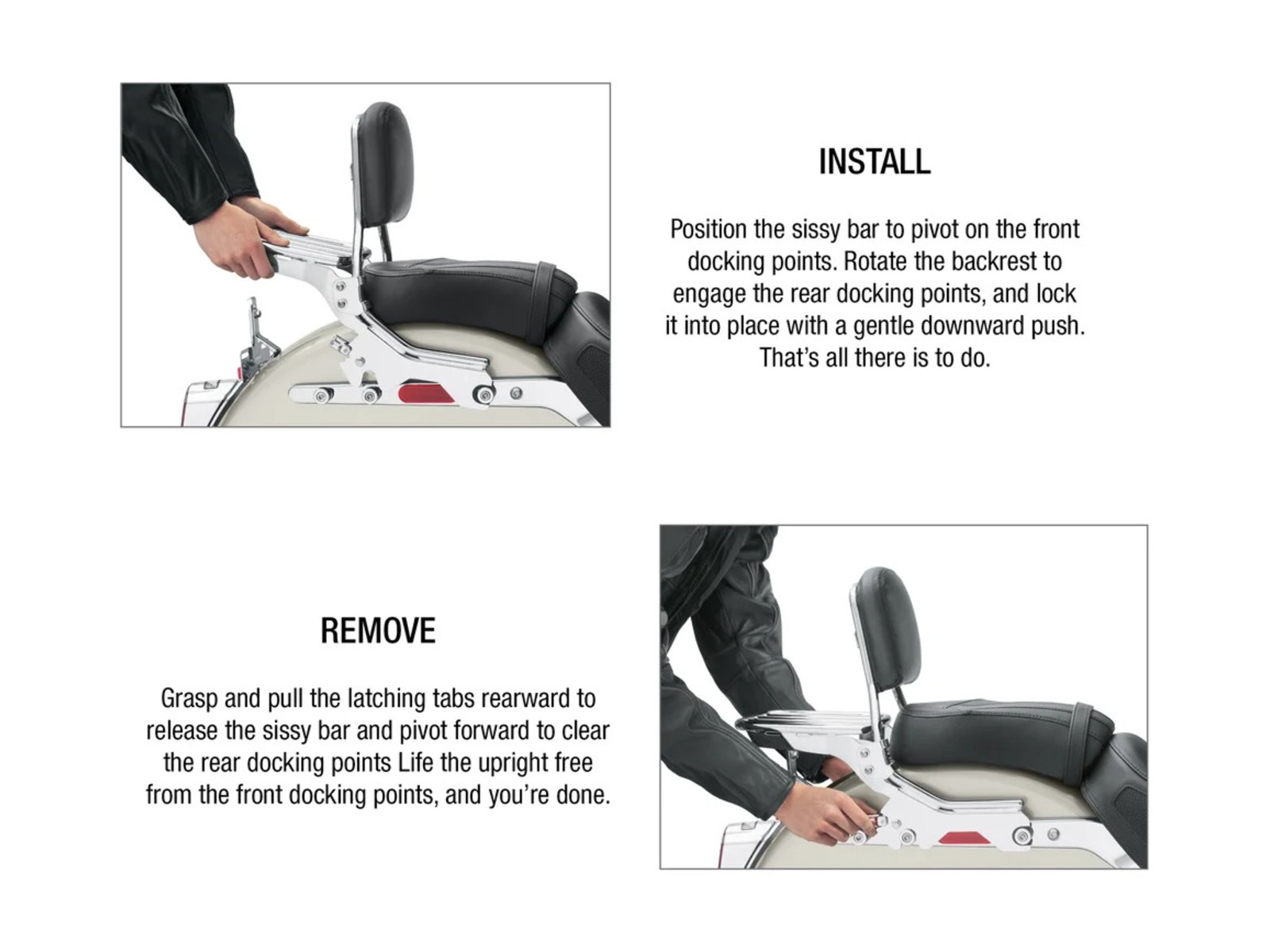 Verleihe Deinem Bike Touring-Komfort und Flexibilität: Der abnehmbare HoldFast™ Sissy Bar Bügel in Standardhöhe bietet Deinem Sozius auf langen Strecken eine entspannte Sitzposition und ein sicheres Fahrgefühl. Dank des exklusiven HoldFast™ Schnellverschluss-Systems lässt sich die Rückenlehne in wenigen Sekunden werkzeuglos montieren oder entfernen. Die einteilige Konstruktion gleitet mühelos in die vorgesehenen Befestigungspunkte und rastet mit einem einfachen Fingerdruck sicher ein.