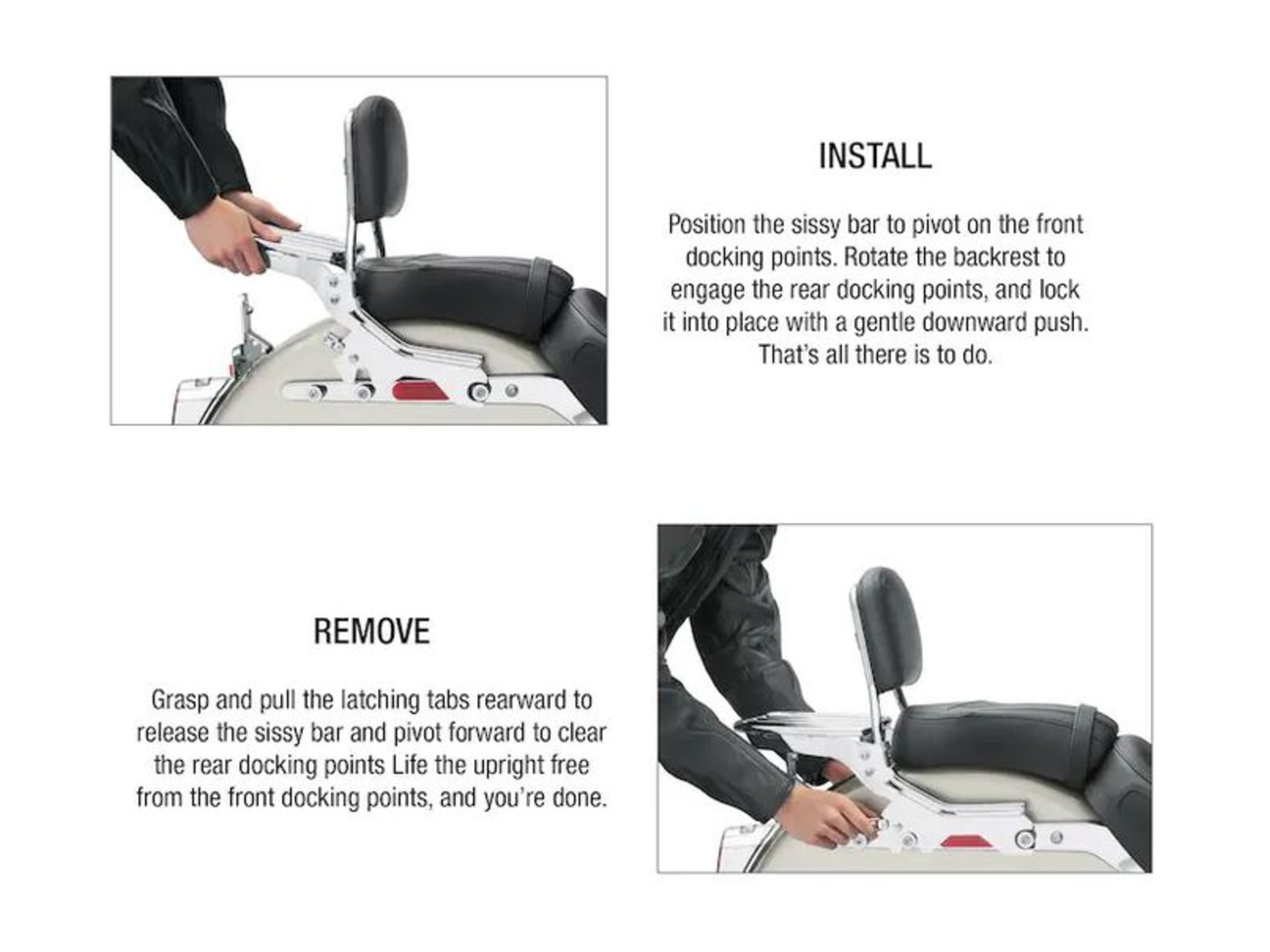 Eine Sissybar und ein Sozius-Rückenpolster sind der Ausgangspunkt für den Aufbau einer kompletten Tourenmaschine. Die Rückenlehne erhöht den Komfort und die Unterstützung über weite Strecken und gibt dem Beifahrer ein Gefühl von Vertrauen und Kontrolle.