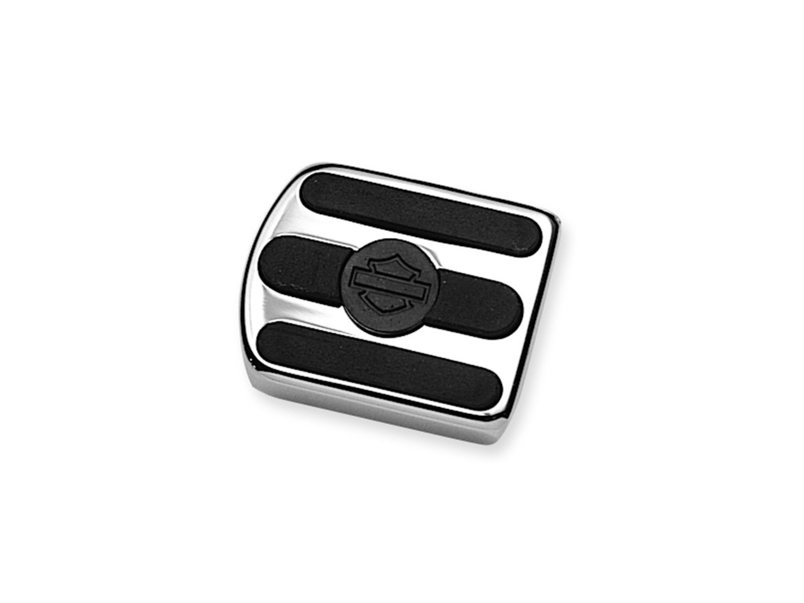 Chrom und Gummi gehören zu den Klassikern im Motorradzubehör – und in dieser Kollektion werden beide Materialien zu einem stimmigen, hochwertigen Custom‑Look kombiniert. Die kleine Bremspedalauflage verbindet glänzendes Chrom mit strukturierten schwarzen Gummieinlagen und setzt mit dem eingegossenen Bar & Shield Logo ein markantes Designstatement.