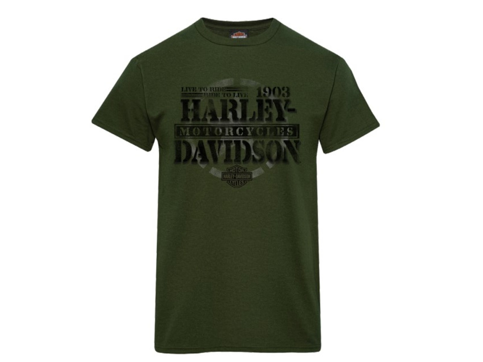 - Wald Grün Dealer T-shirt mit Harley-Davidson Schriftzug