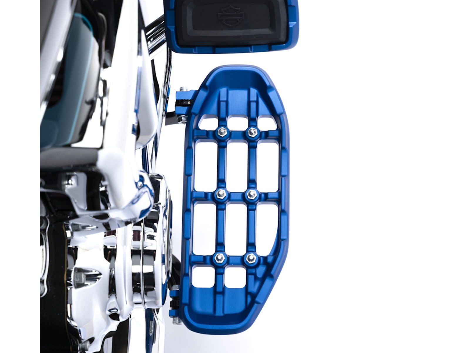Die Redline Collection vereint kompromisslose Performance mit einem auffälligen Custom-Look. Dieses Fahrer-Trittbrett-Set wird aus hochwertigem, geschmiedetem Aluminium gefertigt und präzise bearbeitet. Die strapazierfähige blaue Eloxalbeschichtung sorgt für markante Akzente und unterstreicht den High-Performance-Stil.