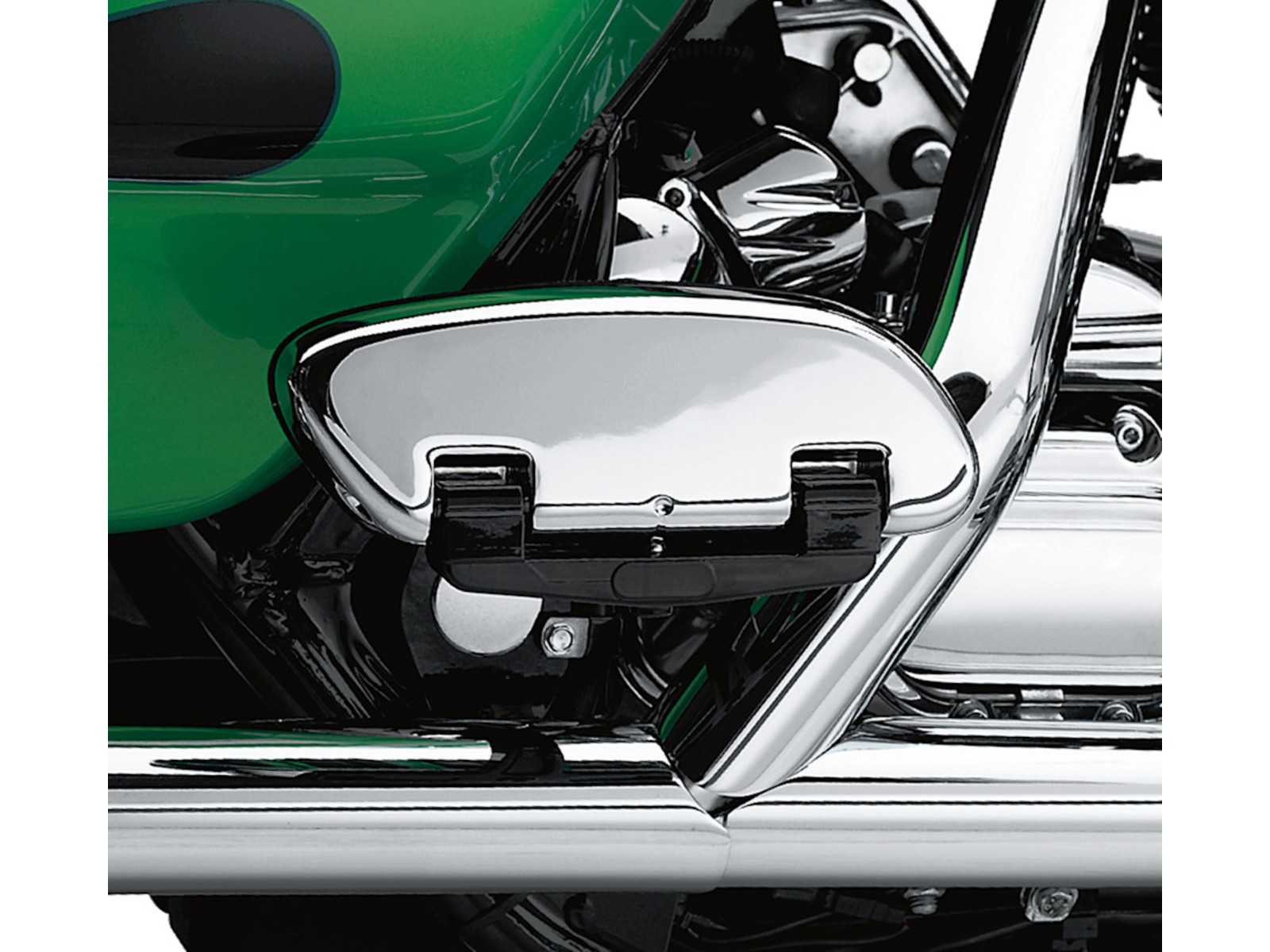 Diese markanten Swept Wing Soziustrittbrettwannen ergänzen perfekt die Form der Fahrertrittbretter und ermöglichen bei bestimmten Modellen den Austausch der serienmäßigen Soziusfußrasten gegen komfortable Trittbretter.