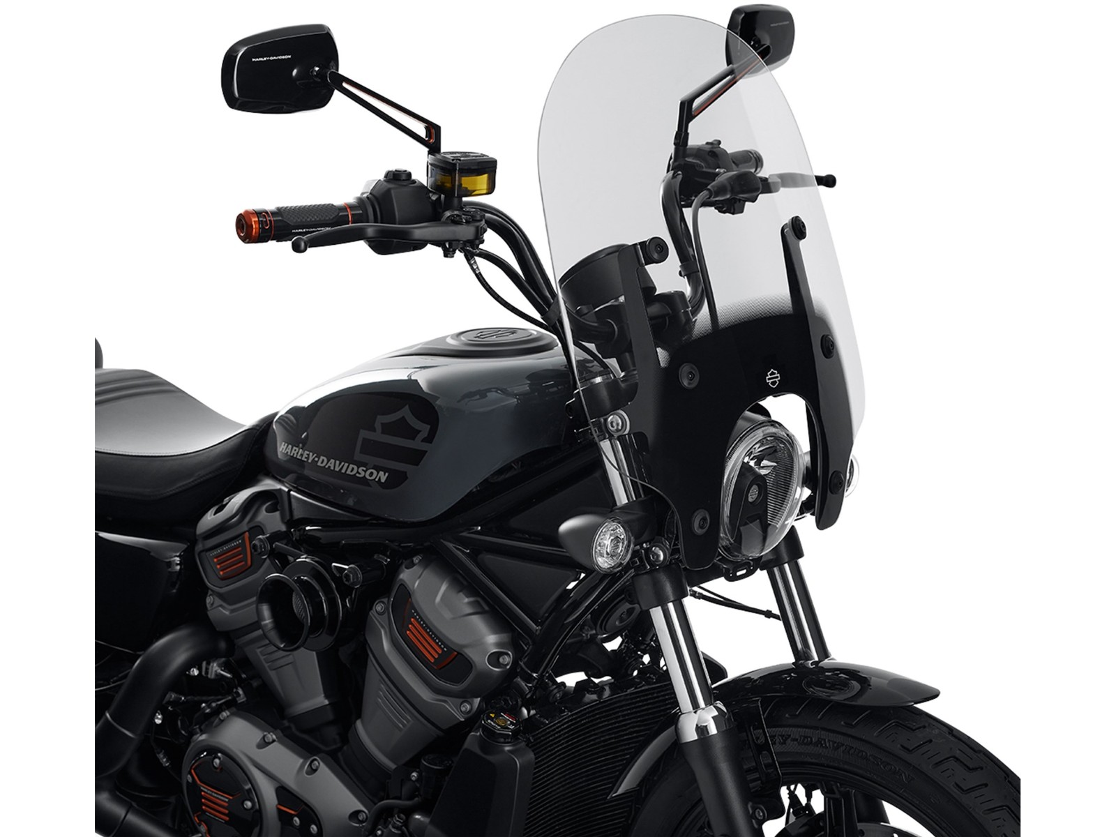 Windschutz im sportlichen Stil. Dieser abnehmbare Windschild wurde speziell für die Nightster™ entwickelt und kann je nach gewünschtem Stil und Windschutz schnell und einfach montiert oder wieder demontiert werden.