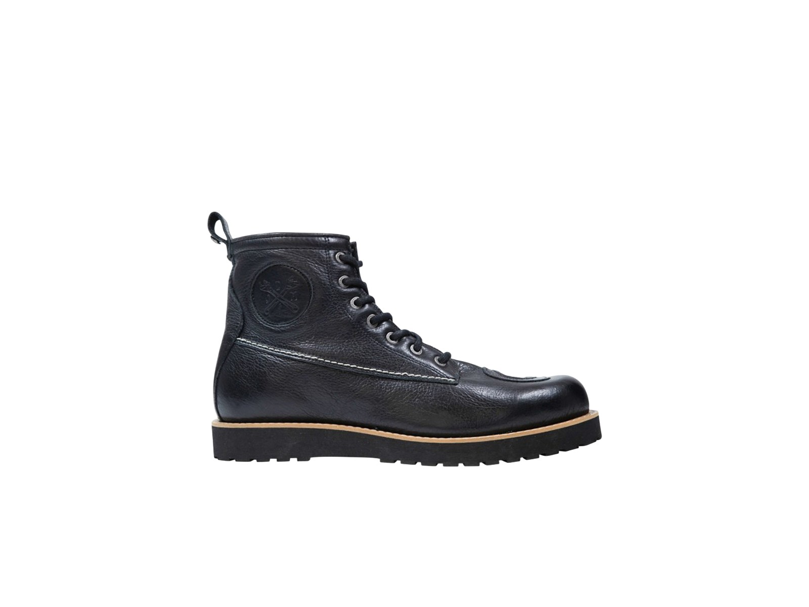 Als klassischer Lederstiefel getarnt, ist der Iron XTM® in Wirklichkeit ein Motorradschuh, der höchsten Sicherheitsstandards genügt. Realisiert haben wir das mit einer Membran aus unserer XTM-Fiber®, die mit der Verstärkung im Knöchel-, Fersen- und Vorderfußbereich für den nötigen Schutz sorgt. Eine „Shift Protection” aus Leder gibt dir beim Schalten zusätzlichen Grip. Durch die „Waterstop“-Funktion der Lasche wird schnelles Eindringen von Wasser in den Schuh vermieden. Selbstverständlich ist die Sohle des Iron XTM® rutschfest, ölresistent und vibrationsabsorbierend.