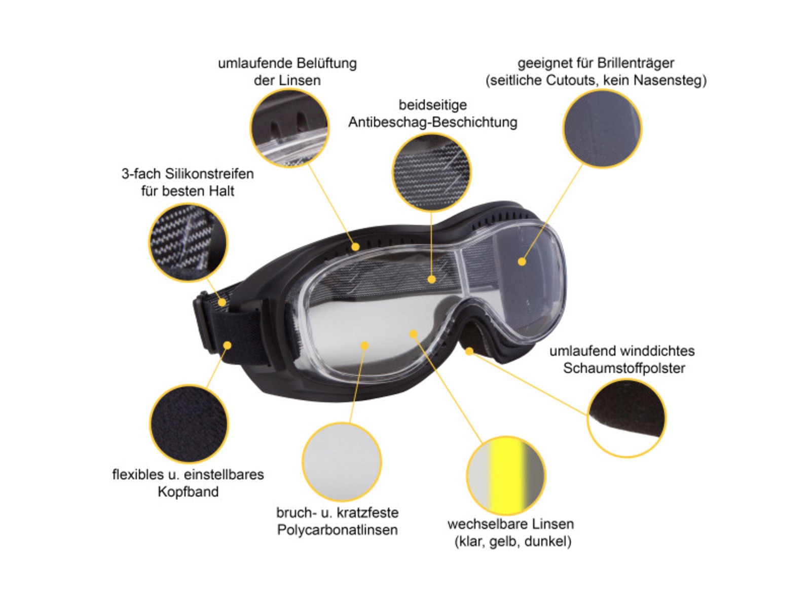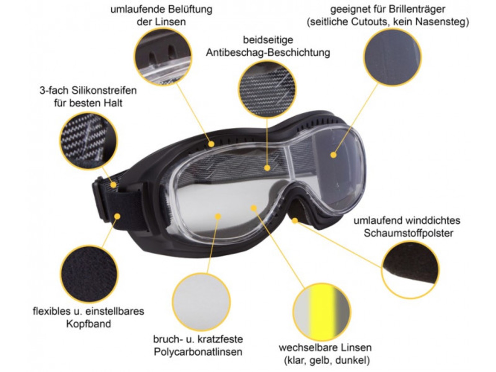 Perfekt als Fahrer oder Überbrille für alle Brillenträger mit offenen Helmen geeignet.