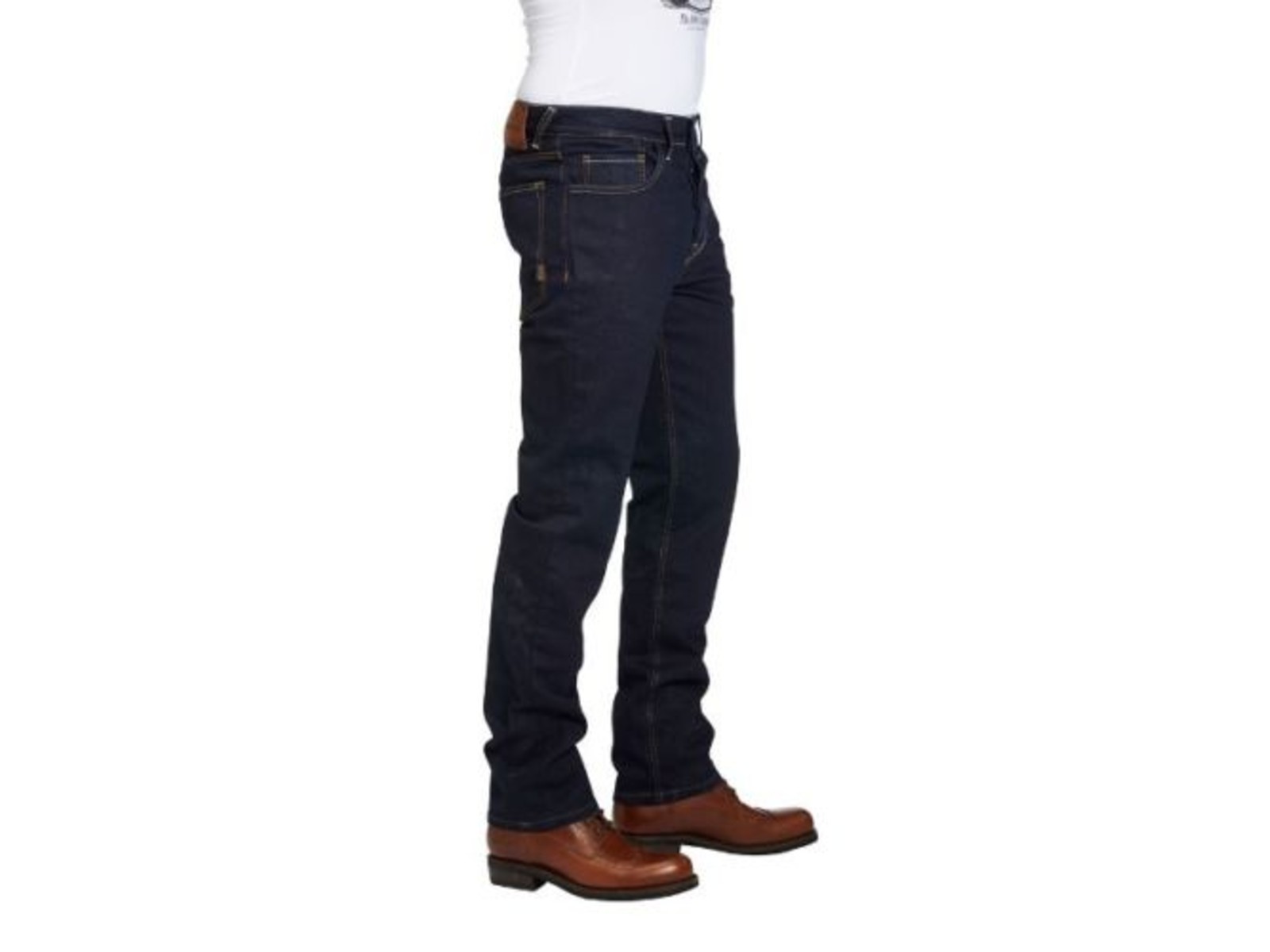 - Das Außenmaterial besteht aus edlem 14oz schweren Raw Denim für einen markanten Look.