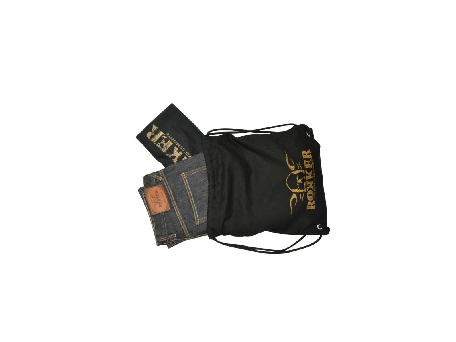 - Geliefert werden die tollen Jeans von ROKKER in einem trendigen Canvas-Turnbeutel mit einem T-Shirt der – unter Motorradfahrern jetzt schon legendären – Schweizer Marke.